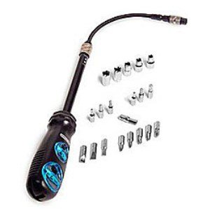 Flexible Shaft for Angles Lock feature fixes flexible shaft in place 22 Additional sockets & bits stored inside handle Cup hook
