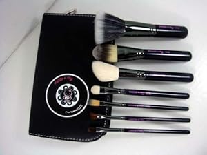 7 PCs Hello Kitty Brush Set Protective Black faux leather case 7 MAC brushes for different application Salon Quality Travel Siz